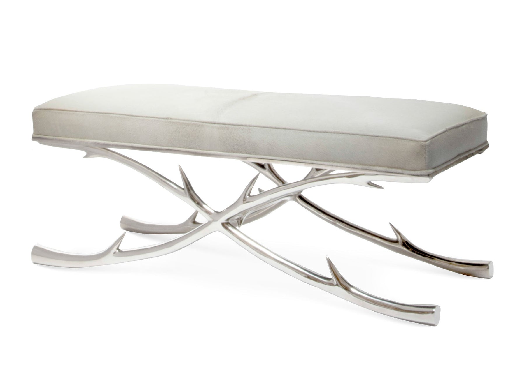 Details: Sand cast brass base in stylized antler motif, with attached seat cushion. Small 387-01, Large 387-02. Available in vintage brass, antiqued brass, bronze, polished nickel.
