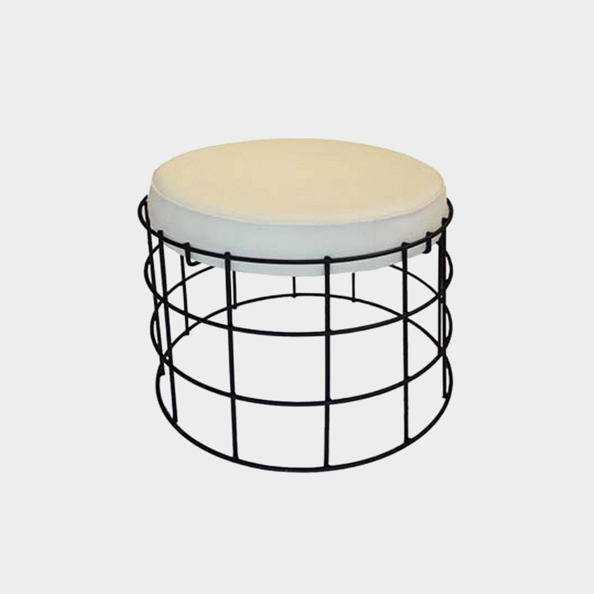 Details: The Alexander Ottoman is made in the USA available with a frame in blackened steel and is available with a COM / COL upholstered cushion or with a white Tibetan Lamb upholstered cushion.