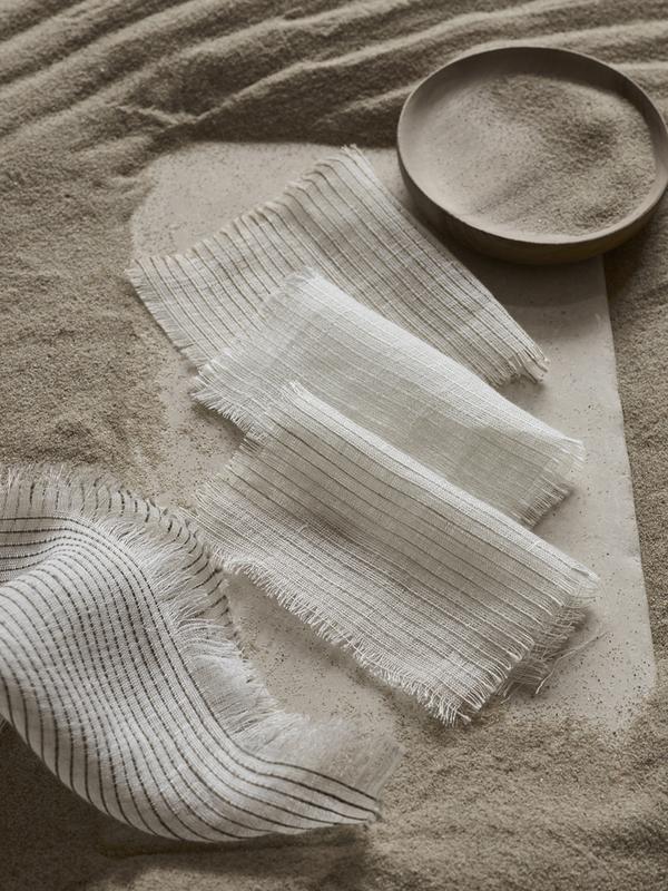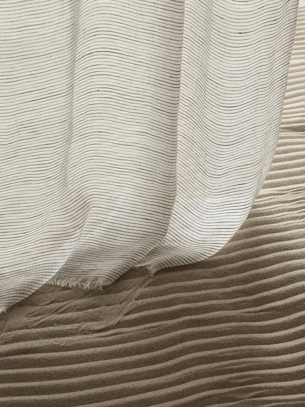 Pure Atlas is a 100% Organic Linen sheer fabric certified to the Global Organic Textile Standard (GOTS). The delicate ivory base is inter-woven with thicker strands of linen, creating a subtle design, reminiscent of the lines of latitude found on the world’s first Atlas. Hung up against the light, these subtle tracings run across the face of the cloth and appear as though they have been hand stitched. This is a double width fabric and can be railroaded.