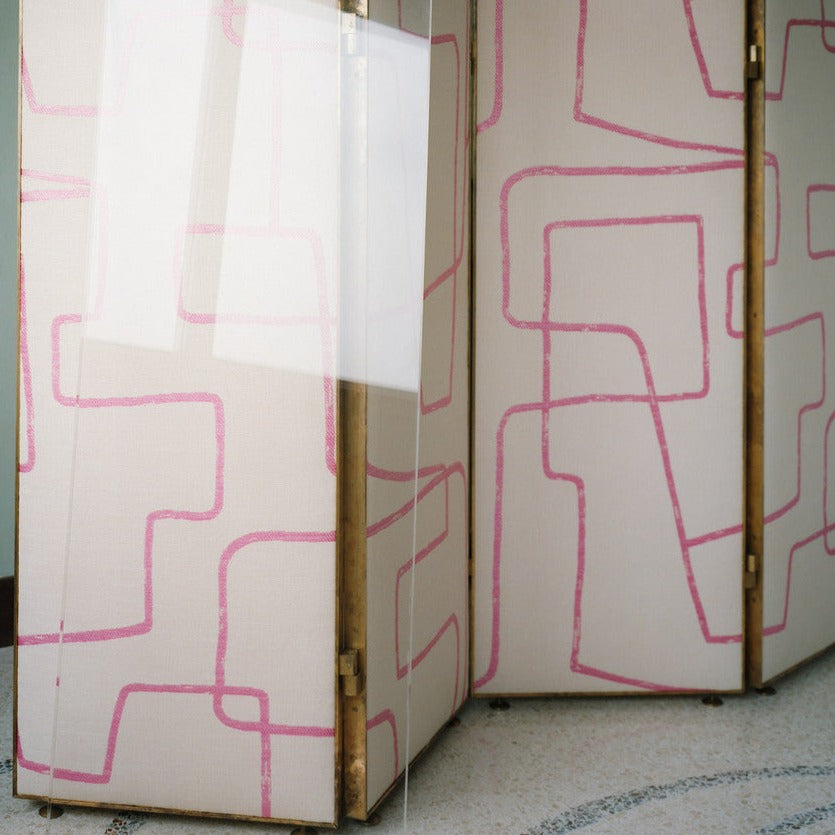 Details: A pronounced contrast of material and colour holds sway on a luminous jacquard whose graphic stroke echoes the mid-century Informalism. Shiny raffia ribbons evoke the experimental materials used by Burri and Accardi in their tracing of a free and uninterrupted linear motif. Small textural silk knots, plays of light and matt effects, together with a daring colour palette, contrive to ripple the surface. With a full feel and a flowing drape, this fabric lends itself to upholstery and curtain projects.