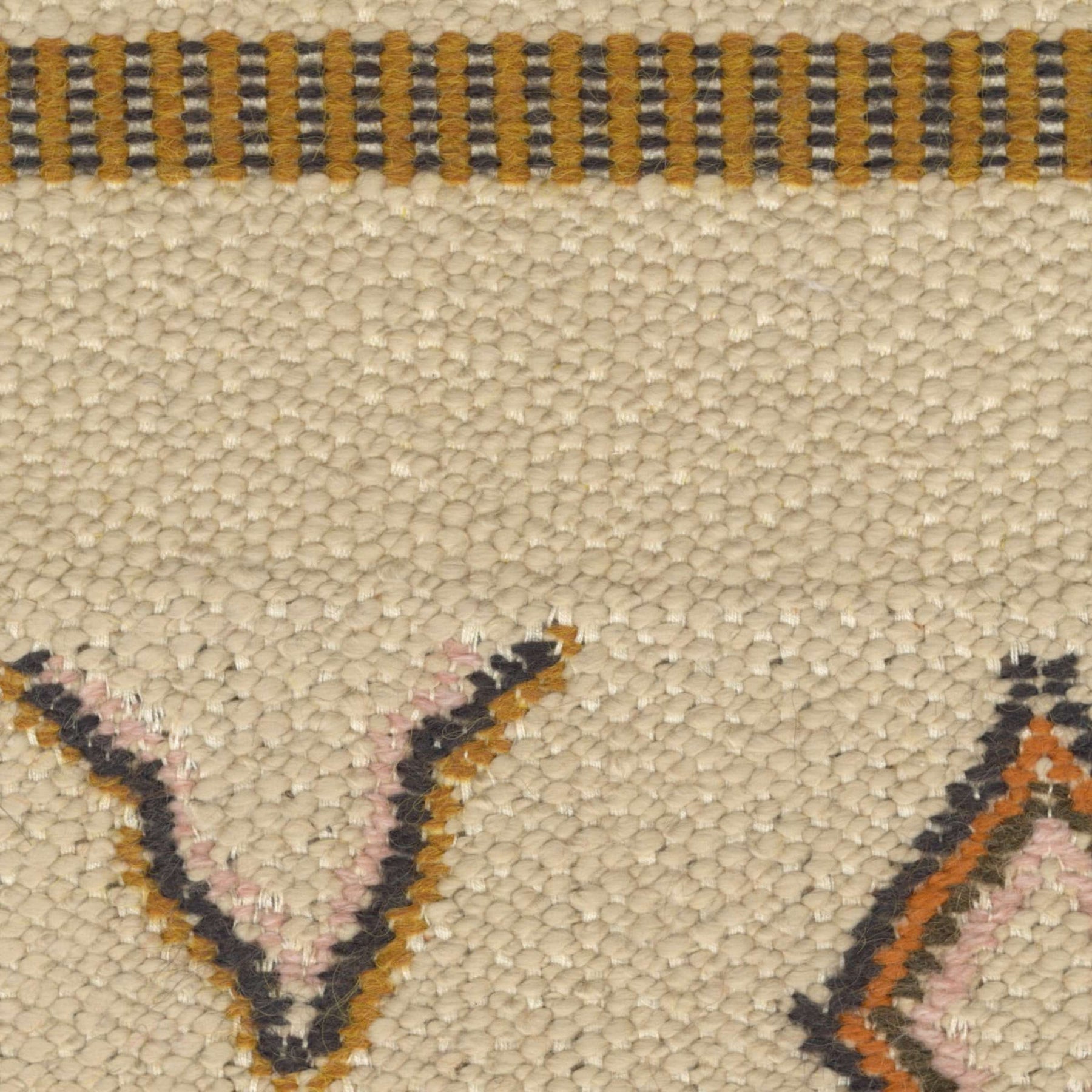 Thick jacquard weave, inspired by Berber blankets, handcrafted effect, imitation embroidered motifs, warm colors