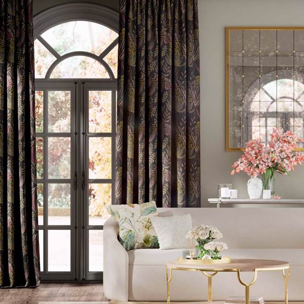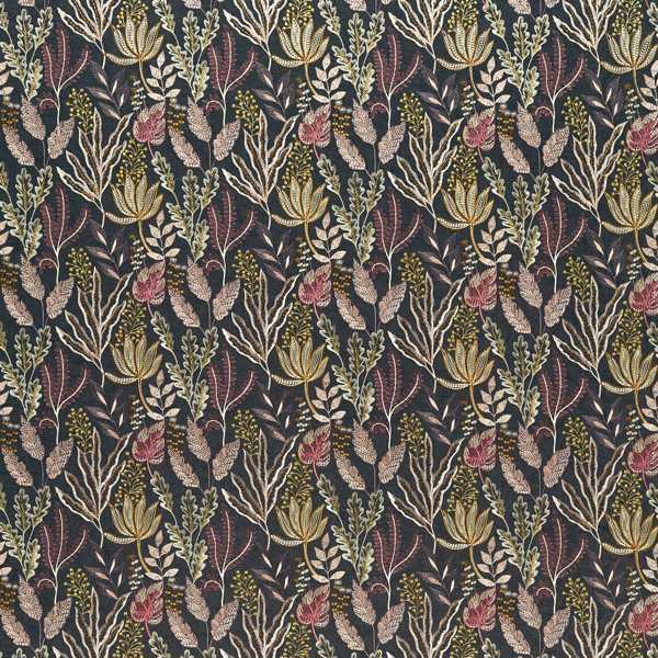 Description: Kick off your sandals and enjoy the island feel of this multicoloured embroidery, inspired by incredible coral reefs and rainforest plants. A natural linen look ground provides a textural base that contrasts against the elegance of light reflecting threads. Suitable for drapes only.