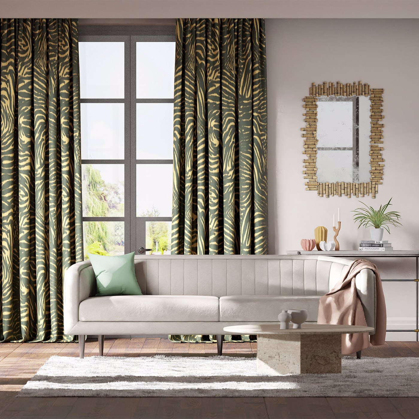 Description: An all-over animal print on a luxurious cotton velvet, Equidae is both statemental and incredibly usable.