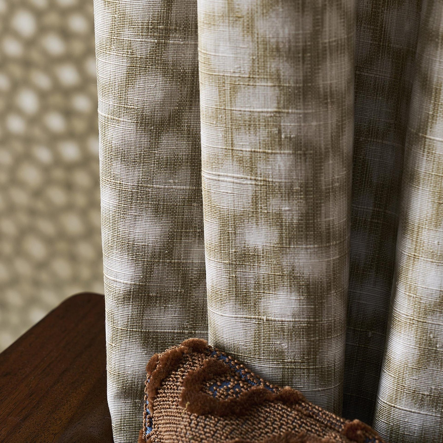 Details: Taken from an archive design a silk warp print the Harlequin studio has translated the original into an abstract animal print for fabric. The warp print design has a true matt silk effect coming in and out of the fabrics weave for an organic finish. Also available as wallpaper.