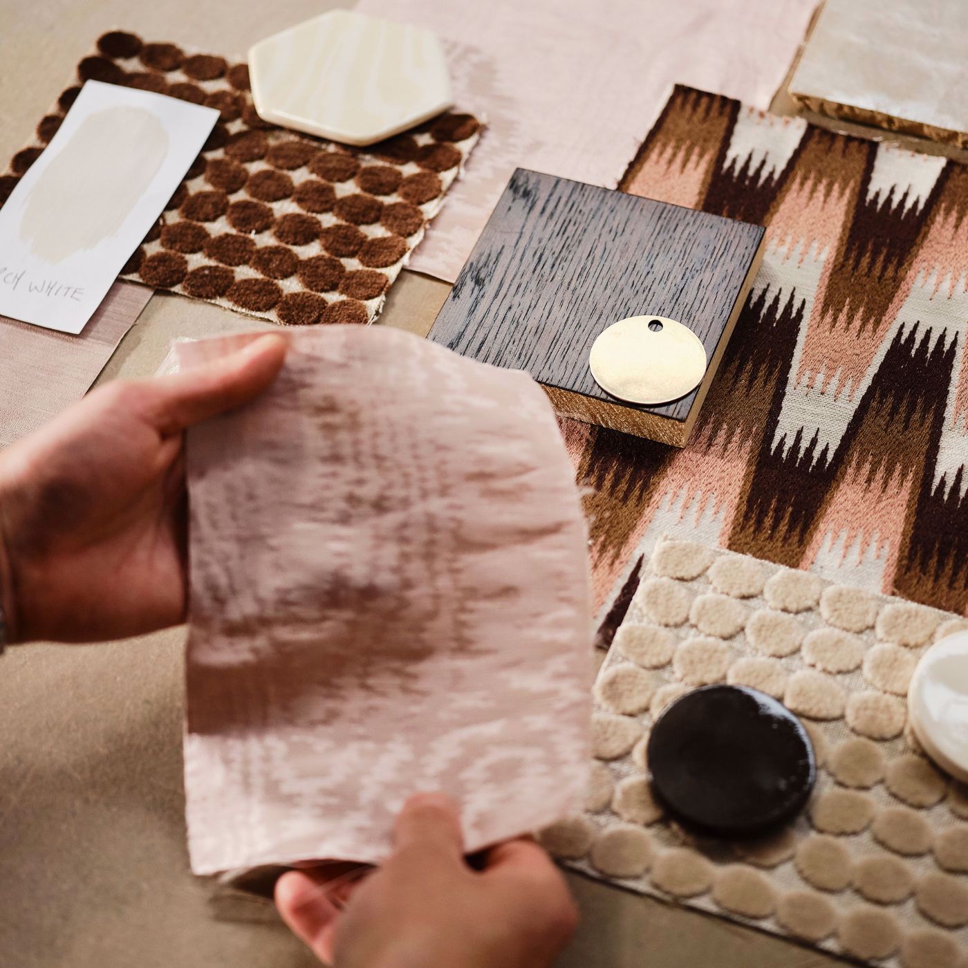 Details: Southborough is an embroidered chevron ombré that harnesses the tones found in Henry's clay work. Southborough cocoons interiors in deepening shades of Rose, Chocolate, Matcha, and Pacific. The colours intensify throughout the ombre, giving new meaning to this stepped chevron design.