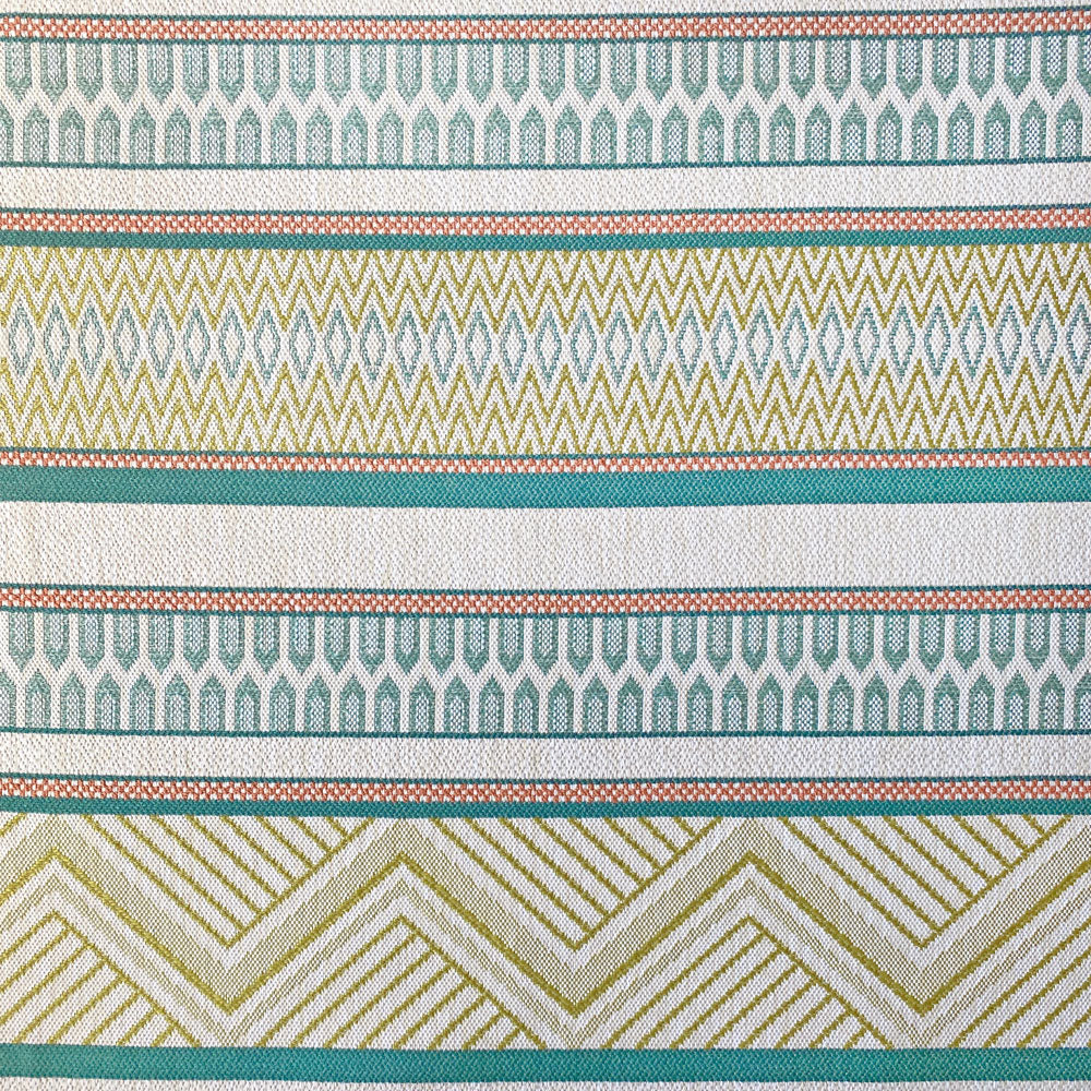 Details: A large-scale horizontal stripe designed decorative performance fabric, suitable for indoor and outdoor furnishings. Fabric features include: quick dry time, liquid repellent, shower resistant, mold and mildew resistant, soil and stain resistant.