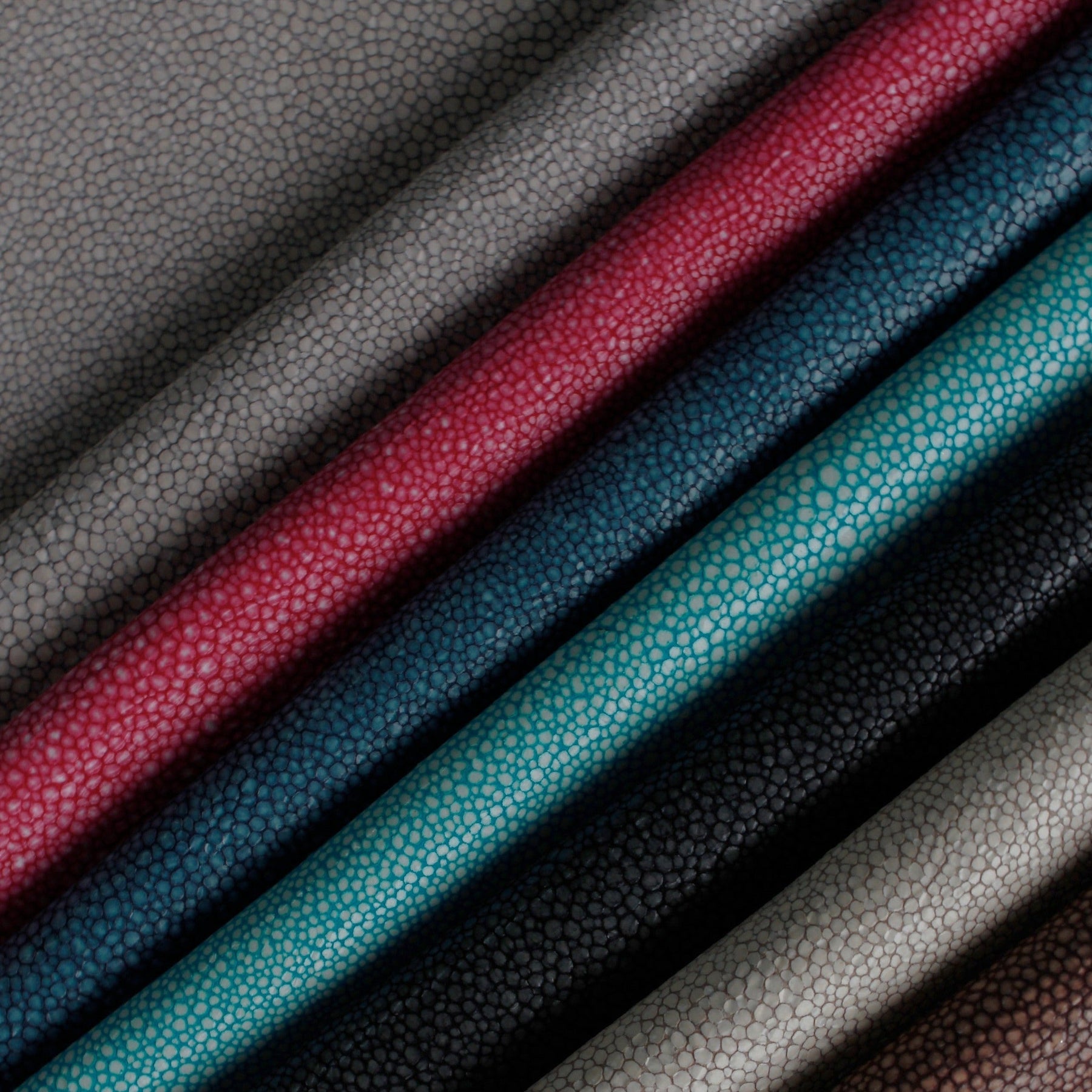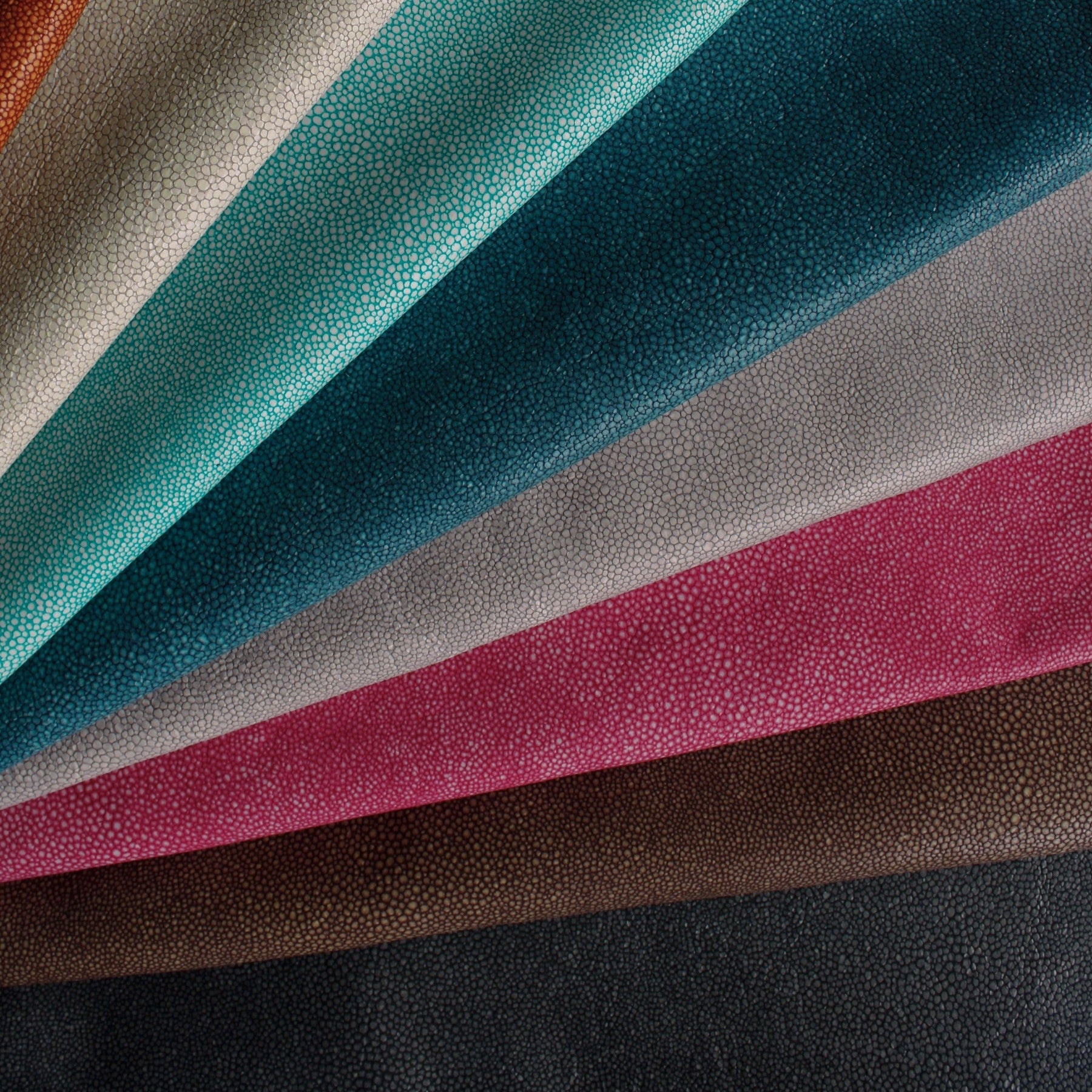 A whole new level... They say a high tide lifts all boats. With the arrival of HIDE TIDE, all interiors are sure to be lifted to the next level. This luxury collection of Italian, semi-aniline hides rolls in from a tannery that has partnered for over 30 years with the world’s most revered fashion houses. Mixing cutting edge technology with manual and artisanal techniques yields a printed exotic leather that is not embossed but rather has a design coat of resin applied through a signature heating and dyeing process. This innovative shagreen look is offered in 8 seaside shades – spanning from the natural palette seen in SEA SALT and DRIFTWOOD to the brighter tropical varieties of STARFISH, TIDE POOL and CORAL REEF. With such a beautiful range of colors you’re bound to find one that floats your boat...