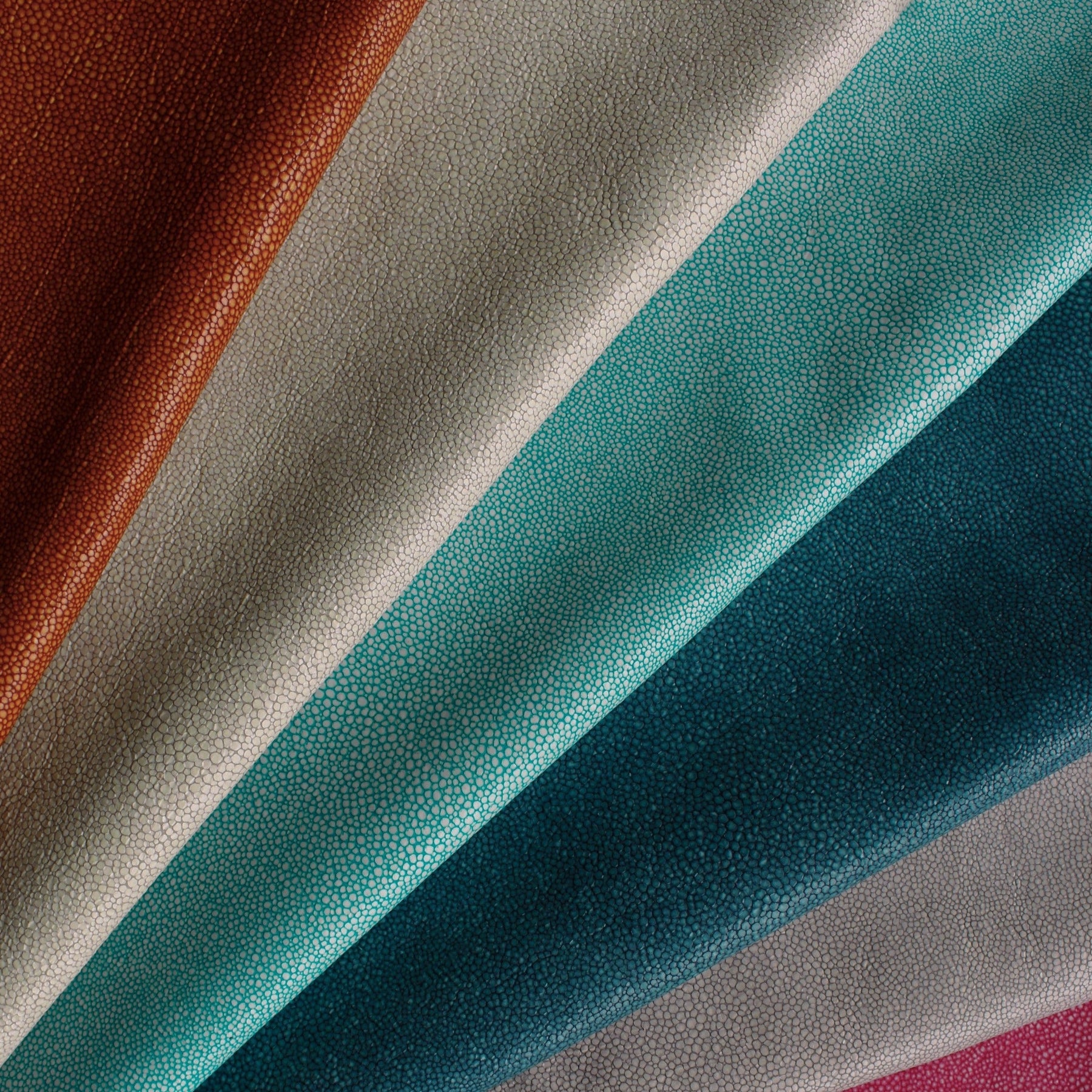 A whole new level... They say a high tide lifts all boats. With the arrival of HIDE TIDE, all interiors are sure to be lifted to the next level. This luxury collection of Italian, semi-aniline hides rolls in from a tannery that has partnered for over 30 years with the world’s most revered fashion houses. Mixing cutting edge technology with manual and artisanal techniques yields a printed exotic leather that is not embossed but rather has a design coat of resin applied through a signature heating and dyeing process. This innovative shagreen look is offered in 8 seaside shades – spanning from the natural palette seen in SEA SALT and DRIFTWOOD to the brighter tropical varieties of STARFISH, TIDE POOL and CORAL REEF. With such a beautiful range of colors you’re bound to find one that floats your boat...