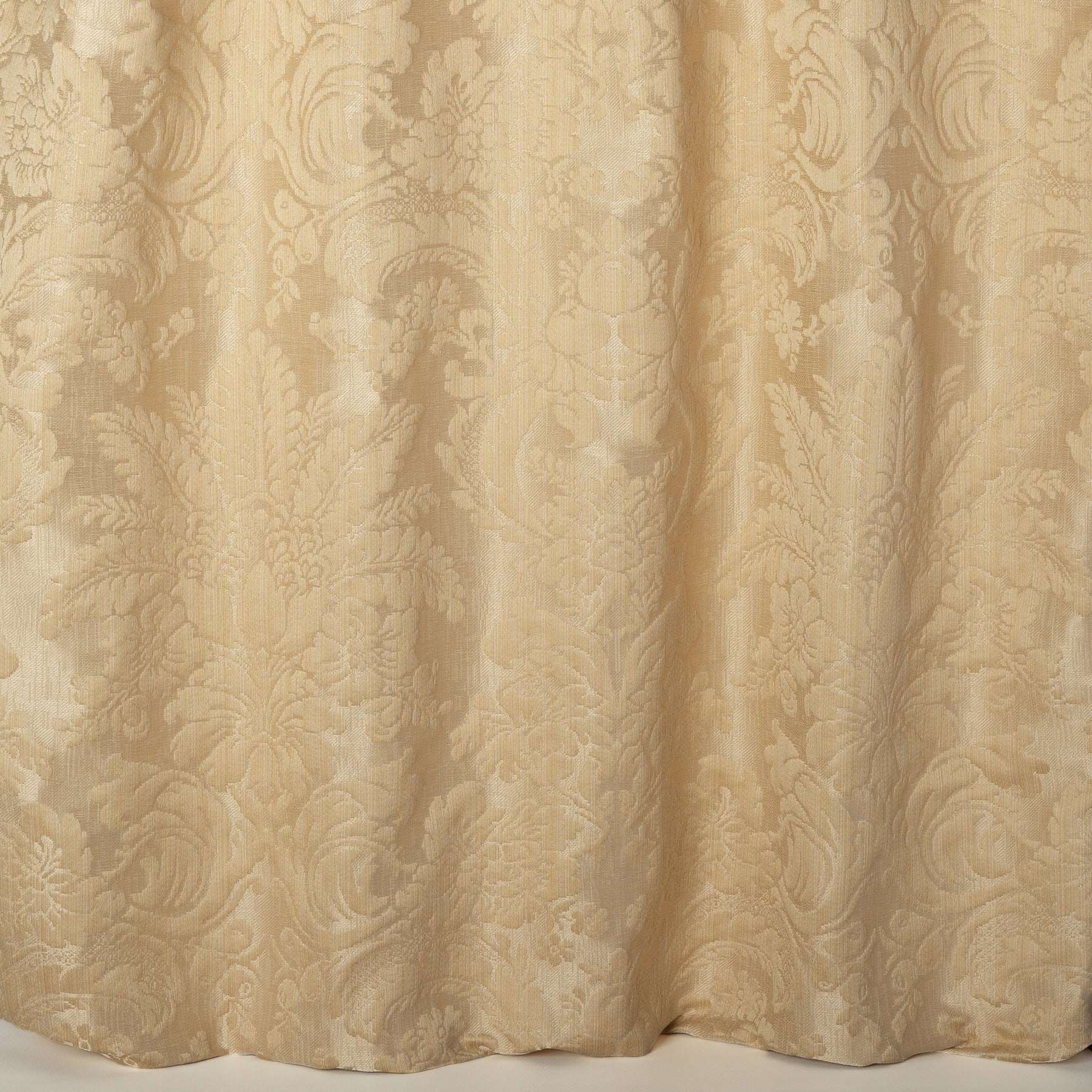 Details: Rossini is a damask with an ornamental motif directly borrowed from 17th century fabrics. The mercerized cotton warp is subtly mottled, revealing the pattern of tone on tone. The colours of this classic are expressed in accordance with the historical heritage of this fabric.
