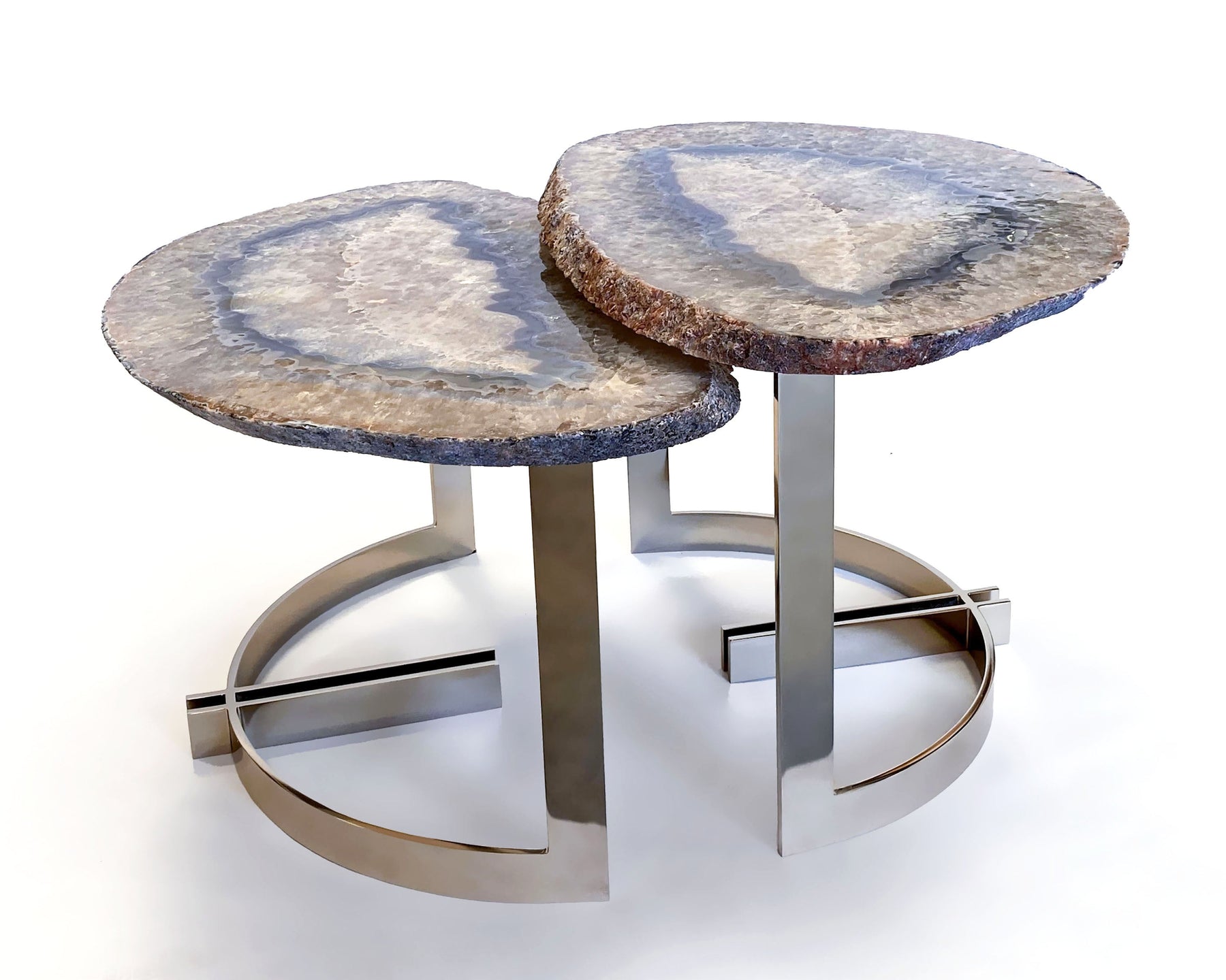 Details: Metal base with onyx or agate stone top.