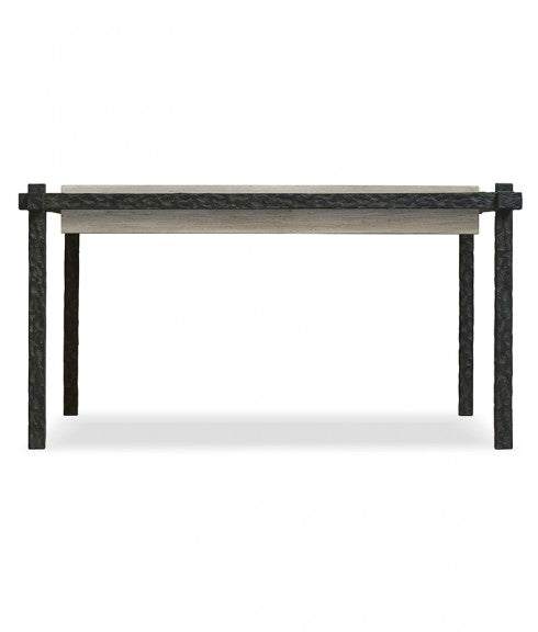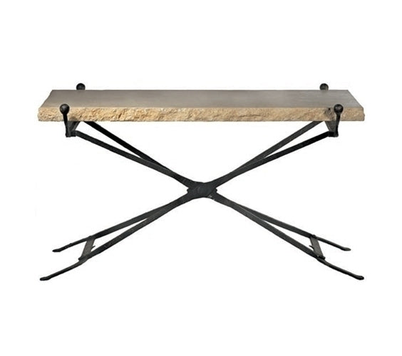 HAMMERED SUSPENDED IRON COFFEE TABLE WITH CAPRI LIMESTONE TOP