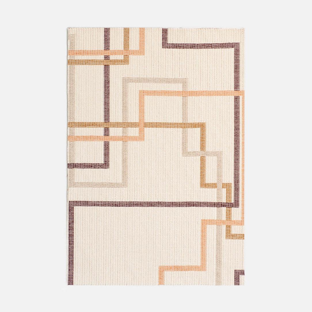 Details: An original graphic design is expressed on a textural jacquard ground, poised between the architectural gravitas and chromatic tangle of the Centre Pompidou and an underground railway map. The structure recalls the tapestries of the Gobelins Manufactory, while the pattern transforms their language and visual effect, on the brink between familiar and unprecedented. The colour palette explores a bright side that nods to Modernism and another, of a more delicate nature, endowed with the rarefied elegance of Art Deco. The regular canneté rib confers a subtle three-dimensionality. Ideal for upholstery, decorative projects, and panels.