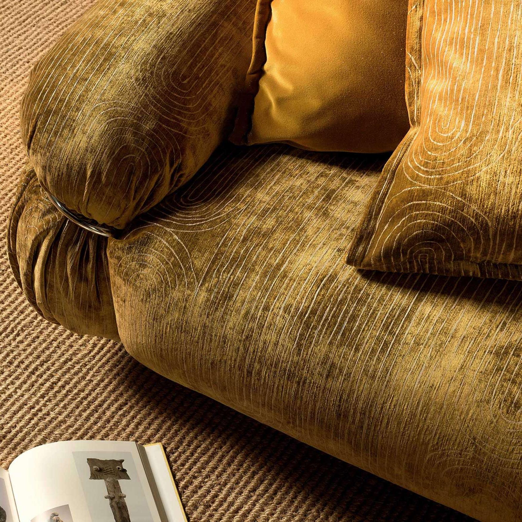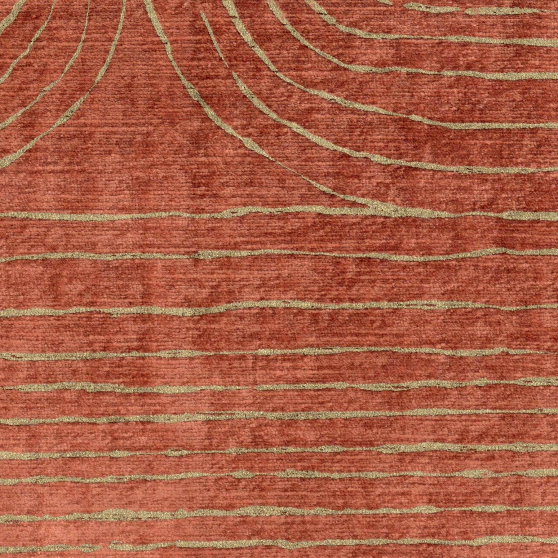 Frame-printed velvet, sinuous and irregular lines, imitation handmade, metallic paint effect, all-over motif