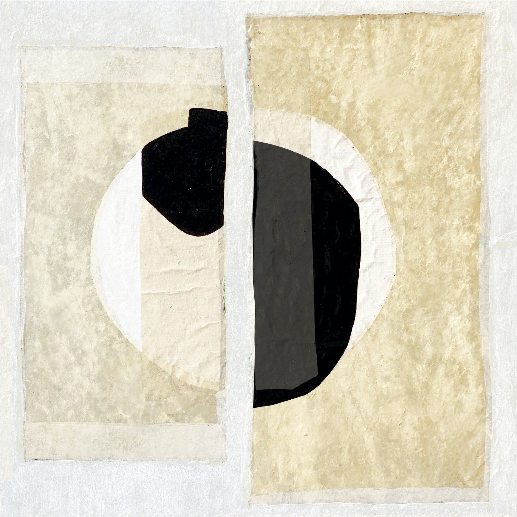An adventure in paper collage. Textured poetry that defies categorisation. Moving through the mass of sheets and cut-outs that unfurl their irregularities, transparent effects and ridges at random across their superimposed layers. These abstract, geometric artworks affirming the influence of the greats of 20th-century pictorial art are produced by hand, making them truly unique pieces. These creations juxtapose artisanal mulberry and tissue papers – uncoloured or tinted with natural pigments – entirely cut out and crafted by hand. You can feel the material of the paper, its relief, its velvety nature and the textures that vary according to the quality of the paper: thick and heavy on one design, fine and transparent on another. Precious artisanal craftsmanship, a cornerstone of our collections.