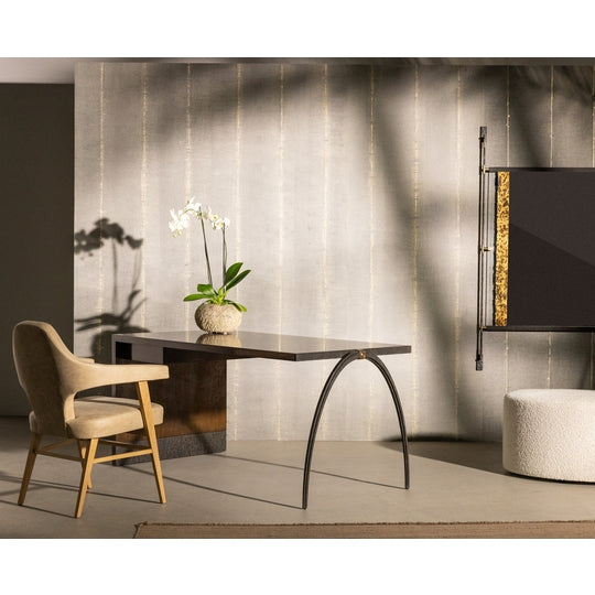 Details: With an unexpected shimmer of light, Glint is a master class in its hand-application of Metallic Leaf. Handmade in panels, the maker meticulously renders an intuitive striation of Metallic Leaf within layers of plasterwork and customized glazes. Glint scintillates in expressive handwork for a wall surface of texture, depth and finesse.