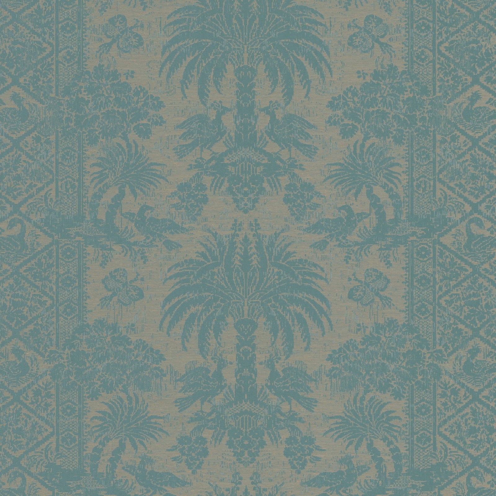Details: Alexandria Mural is of Venetian inspiration, a precious damask of gold and bronze tones, unveiling palms and dreamlike birds, as a persistence of The Thousand and One Nights.