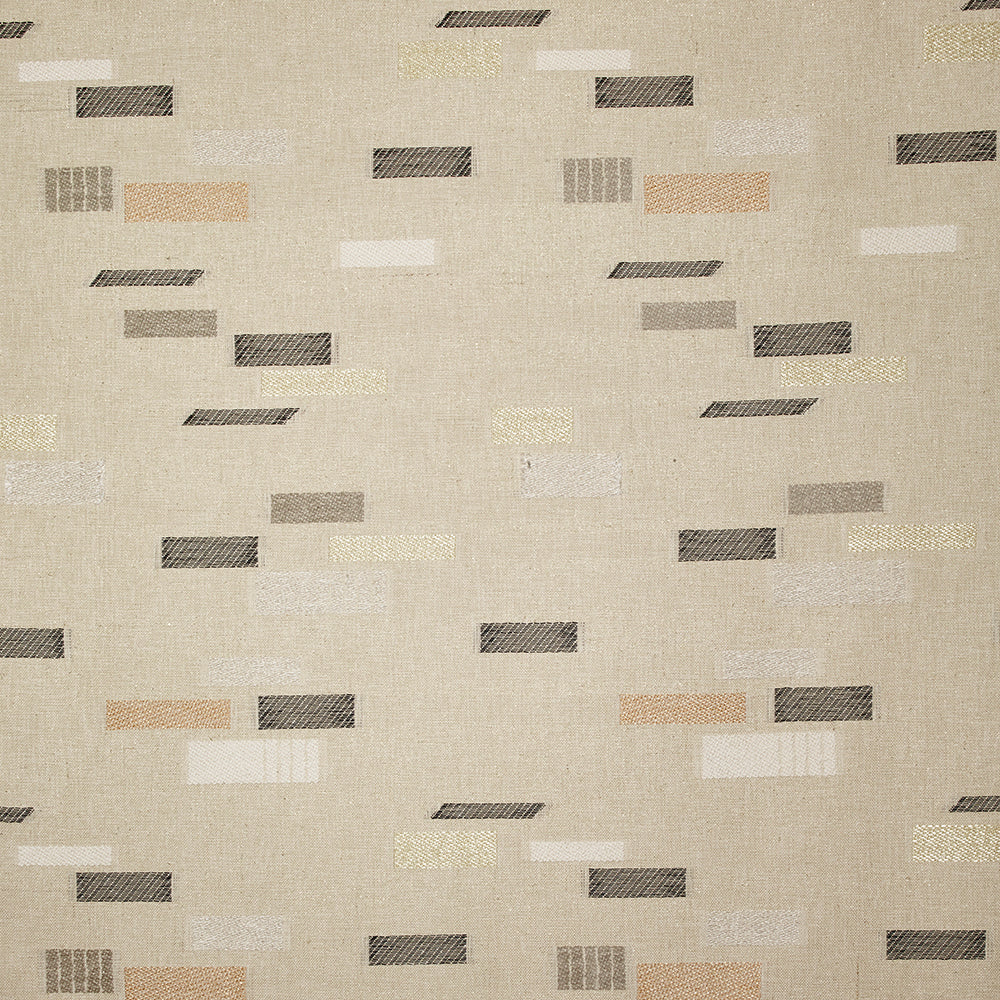 Similar to a piece of hand-executed embroidery, an abstract composition of geometric shapes realized with yarns of different thicknesses and colours, stands out on a bulky ground of jute and cotton. A tribute to raw materials, yarns and the very essence of weaving, which recalls works by the German Bauhaus school and artist Anni Albers.